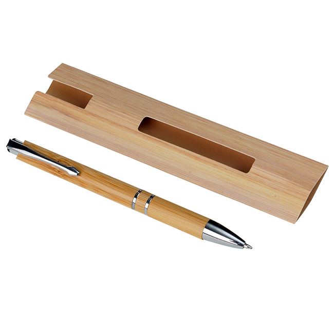 SUTUN Bolígrafo con grip de bambú, clip y mecanismo retráctil. Incluye estuch...