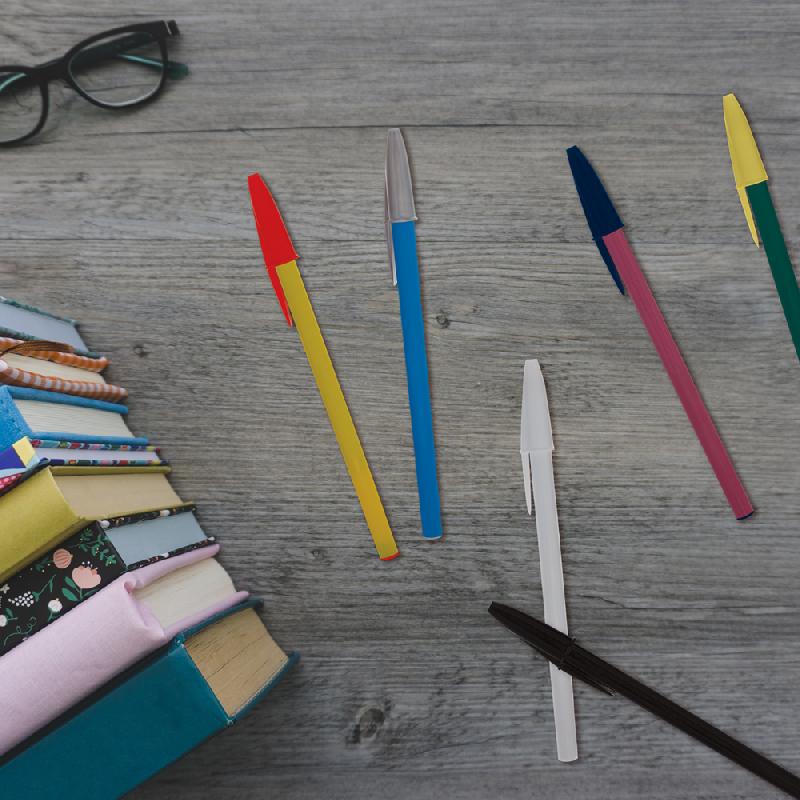 ELLIS Bolígrafo de plástico de color sólido, con clip blanco y mecanismo de c...