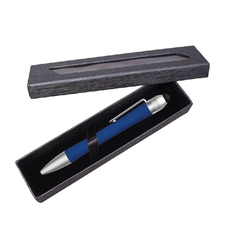 Bolígrafo metálico de silicón con punta touch. Medidas: 14 x 1.3 cm Material: Metal. Empaque: Caja de cartón.