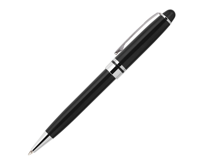 BULGARI - Bolígrafo plástico con acabado metalizado, anillo y punta metálica. Mecanismo retráctil.