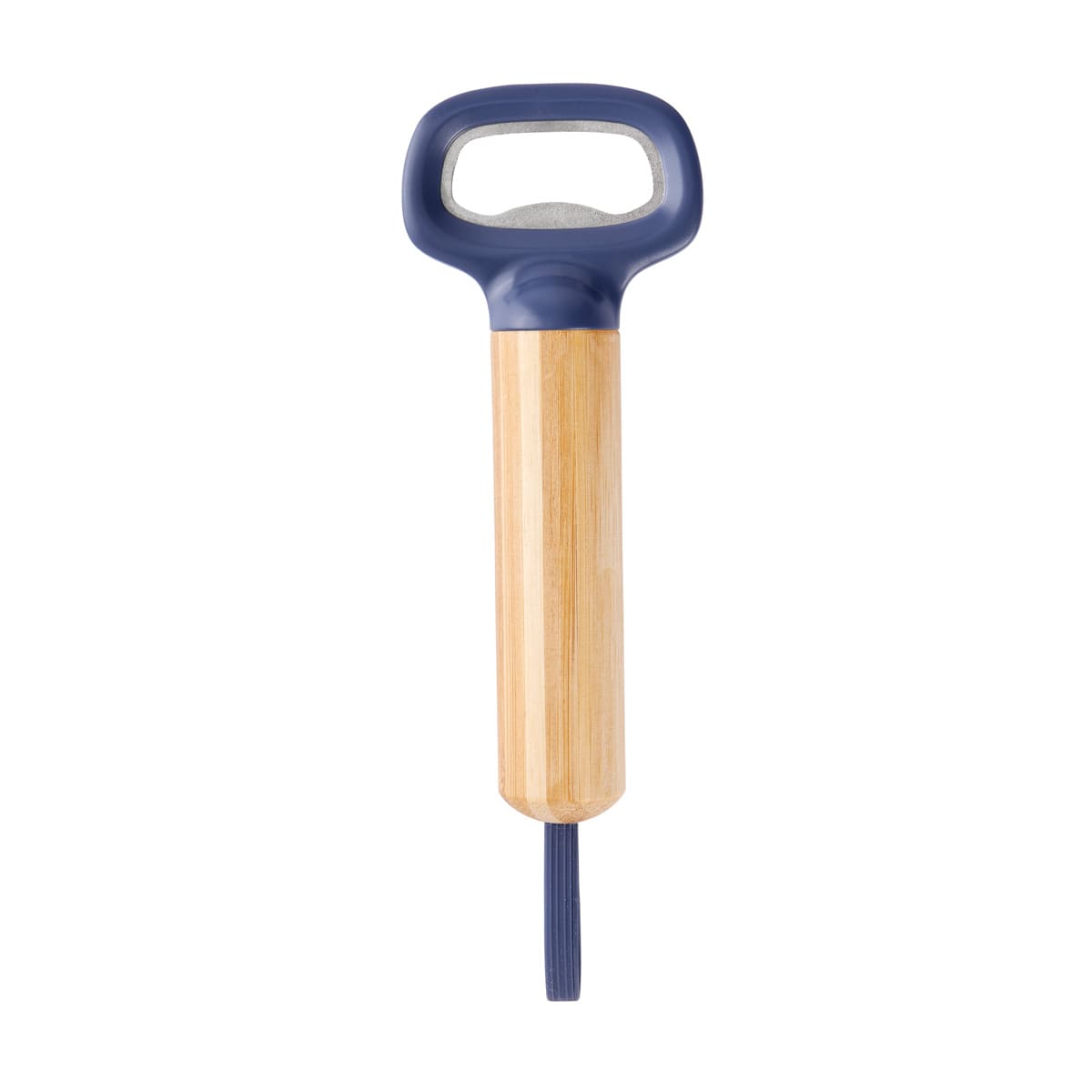 DESTAPADOR KAUPI - Destapador con mango sólido ergonómico. Hecho de bambú y acero inoxidable de alta calidad, no se rompe ni deforma fácilmente. Incluye asa de silicón para que pueda ser enganchado y tenerlo siempre al alcance.