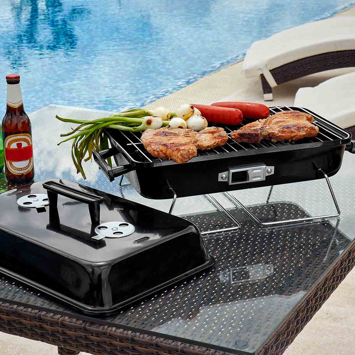 ASADOR MAKY - Asador portátil de carbón. Incluye parrilla y tapa con difusor de temperatura. Base con asas. Este producto por ser últimas piezas puede presentar alguna variación, no se aceptan devoluciones.