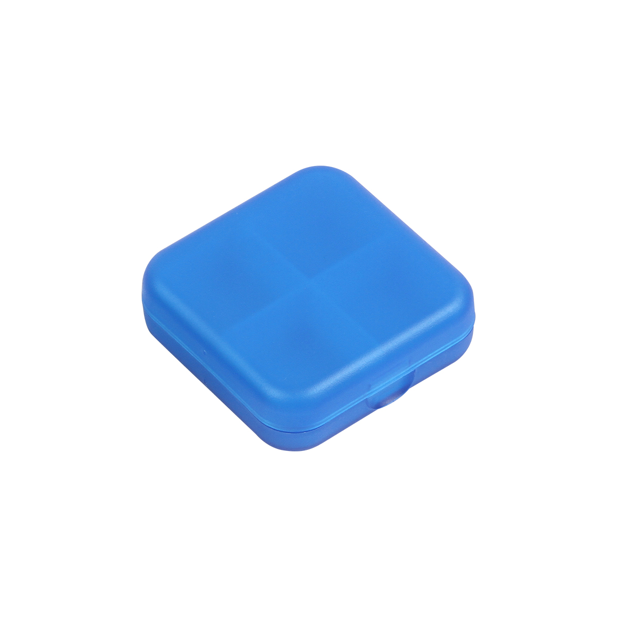 Pastillero Erba. - Pastillero de plástico cuadrado con 4 compartimentos lo suficientemente amplios para guardar múltiples capsulas/píldoras, con cerradura de clip y acabado mate.