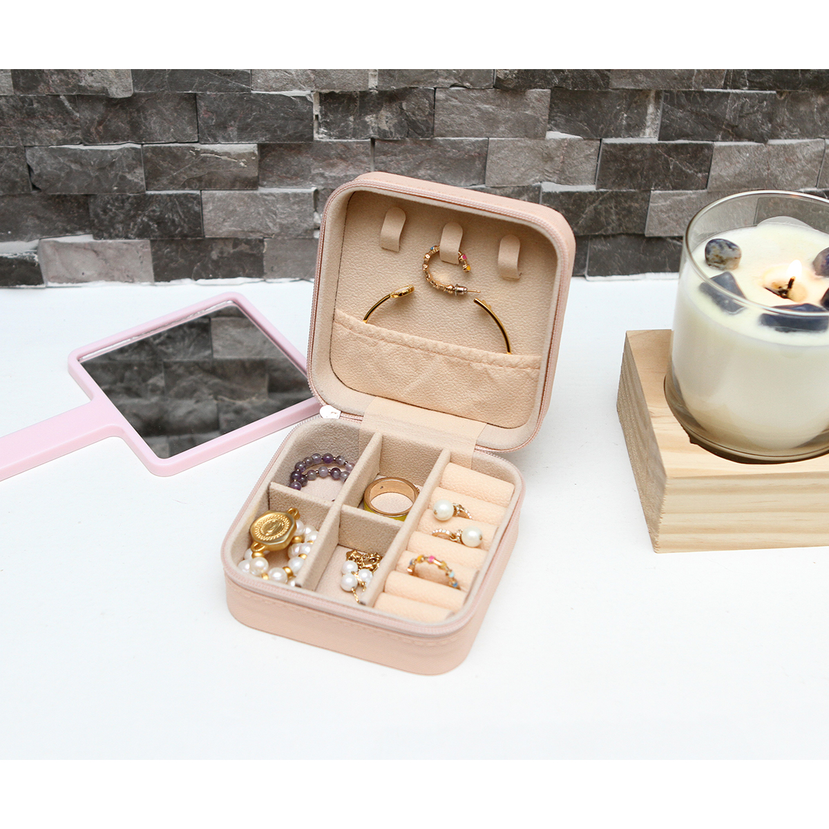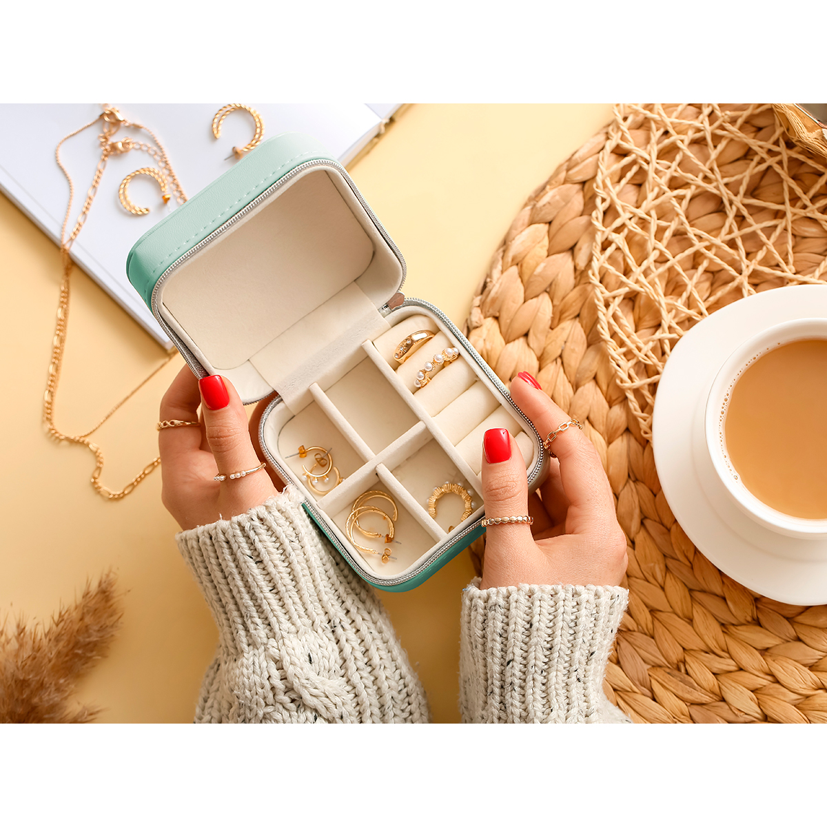 Organizador Ereván. - Organizador joyero fabricado en Nylon y PVC, cuenta con cuatro compartimentos para alhajas y uno más para aretes. Disponible en colores blanco, gris, rosa y verde.