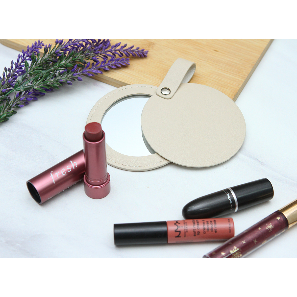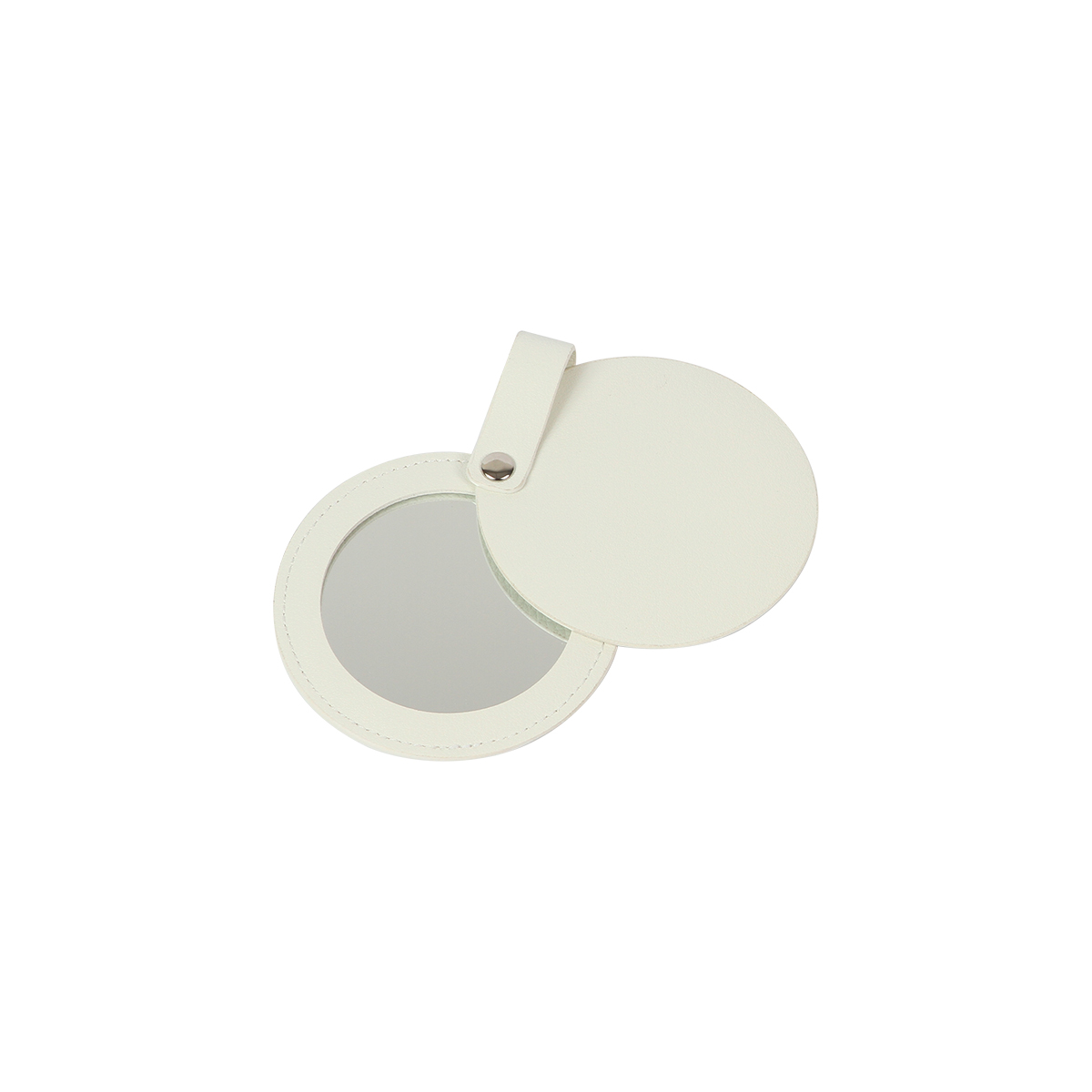 Espejo Toul. - Espejo de bolsillo con cubierta en curpiel fabricado en PVC. Cuenta con un asa pequeña para su mejor manipulación y transporte. Gracias a su tamaño y a que es bastante ligero, es ideal para llevarlo contigo todos los días.