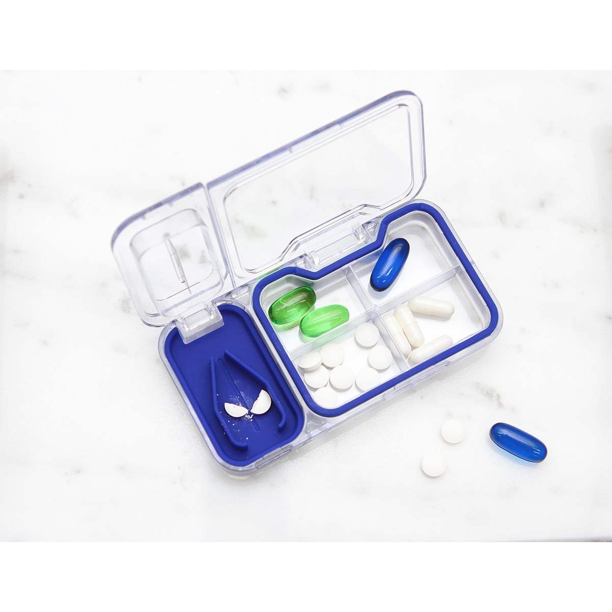 Pastillero Bresse. - Pastillero fabricado en plástico tipo PS, con silicón en la tapa para un mejor cerrado, incluye navaja de acero inoxidable. Tiene 4 compartimentos espaciosos perfectos para píldoras, pastillas, tabletas, etcétera.