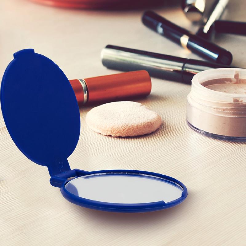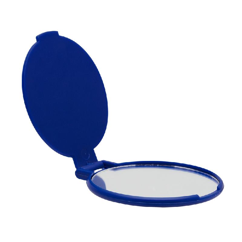 Espejo redondo de bolsillo, de superficie plana para personalizar. Medidas: 6cm x 6.8cm x .05cm Material: Plástico ABS