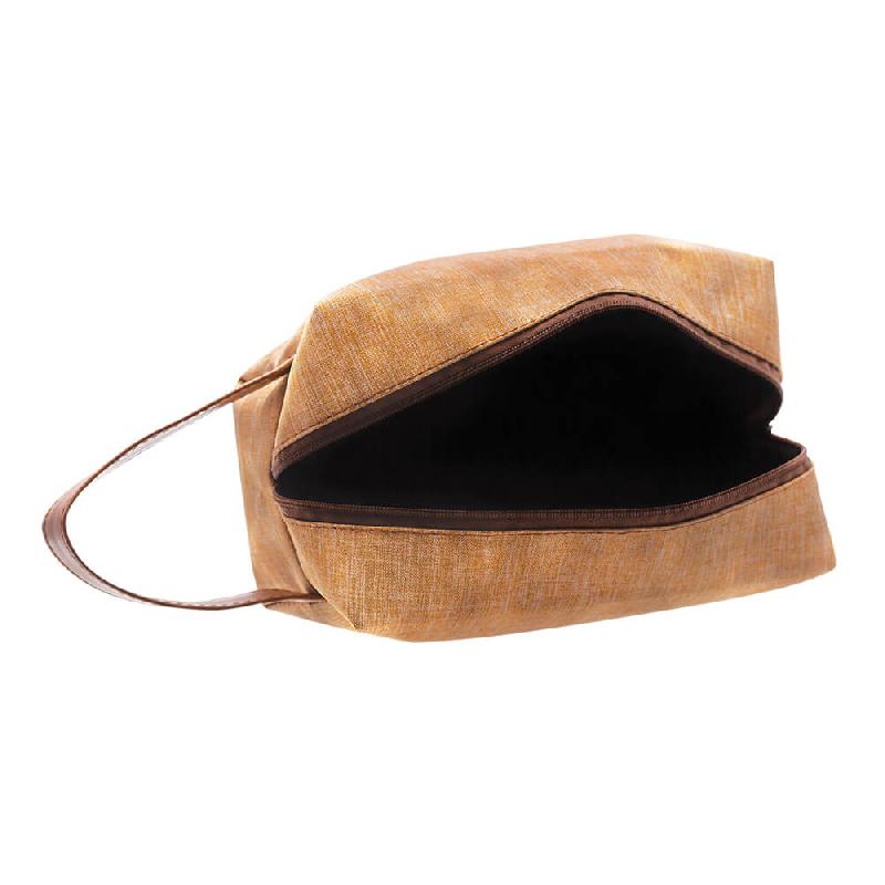 Cosmetiquera rectangular con asa para fácil manejo. Medidas: 18cm x 10.5cm x 9cm / correa 10cm Material: Poliéster. Empaque: Bolsa de celofán.
