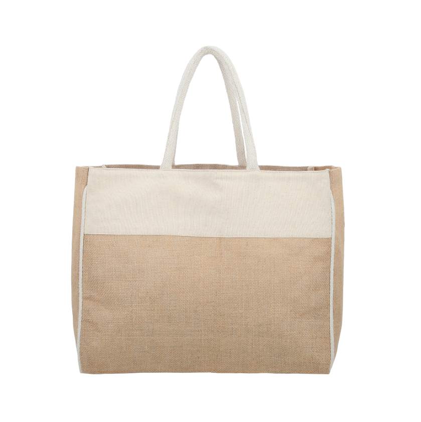 CUBA Bolsa de yute laminada con algodón, fuelle y asas.