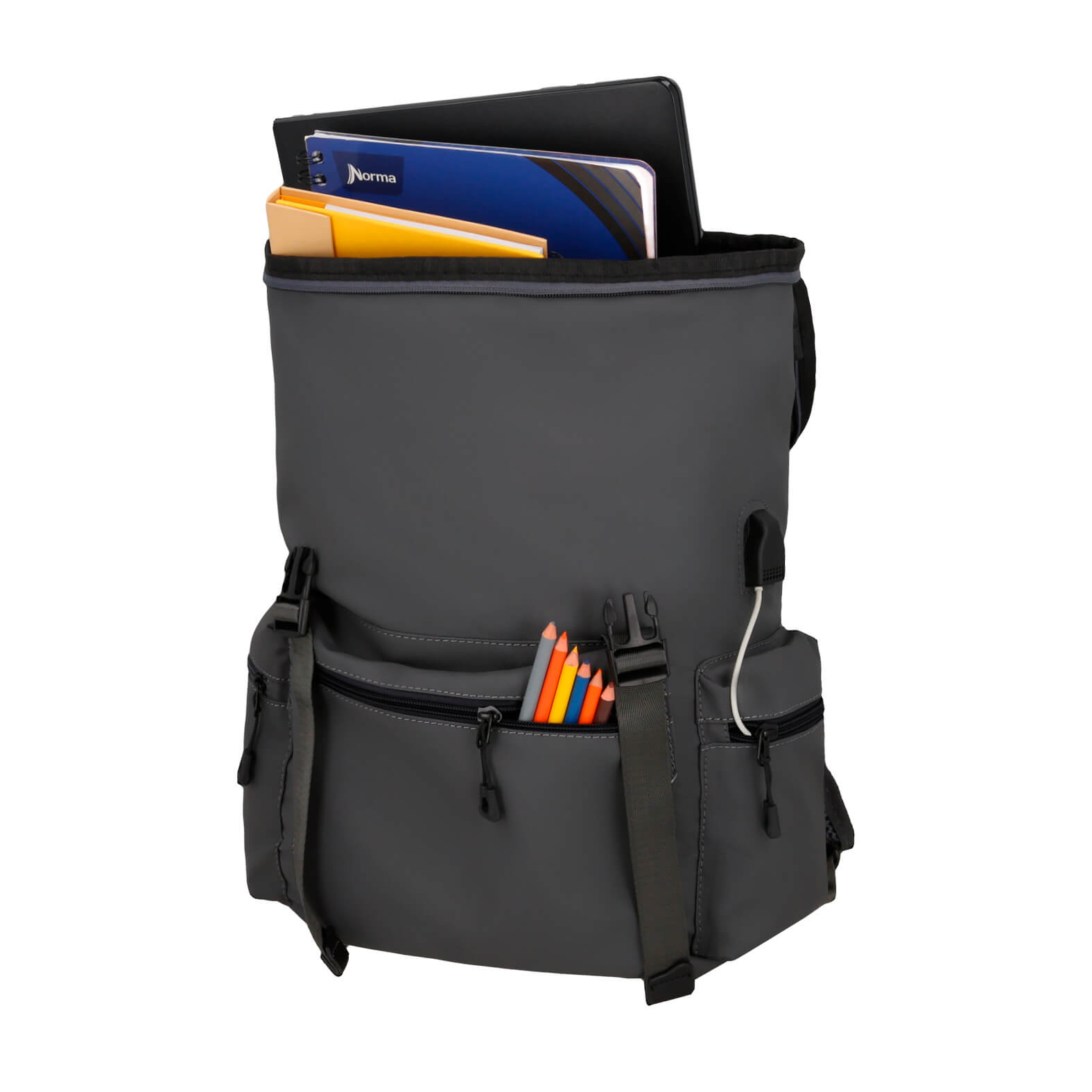 LUANG Mochila de 1 compartimento principal con espacio para porta laptop, 1 bolsa interna, 1 bolsa frontal, dos bolsas laterales con cierre, 1 bolsa en parte superior, broches, carry on y asa superior.