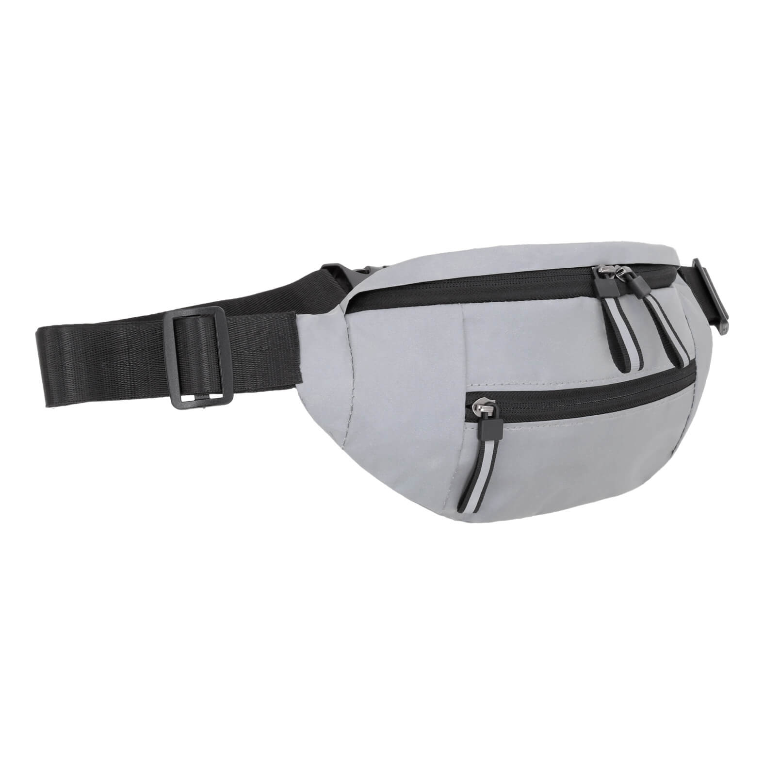 ALAIN Cangurera antirreflejante que incluye, 1 compartimento principal con compartimento interno, 1 compartimento frontal, correa ajustable y broche de seguridad.