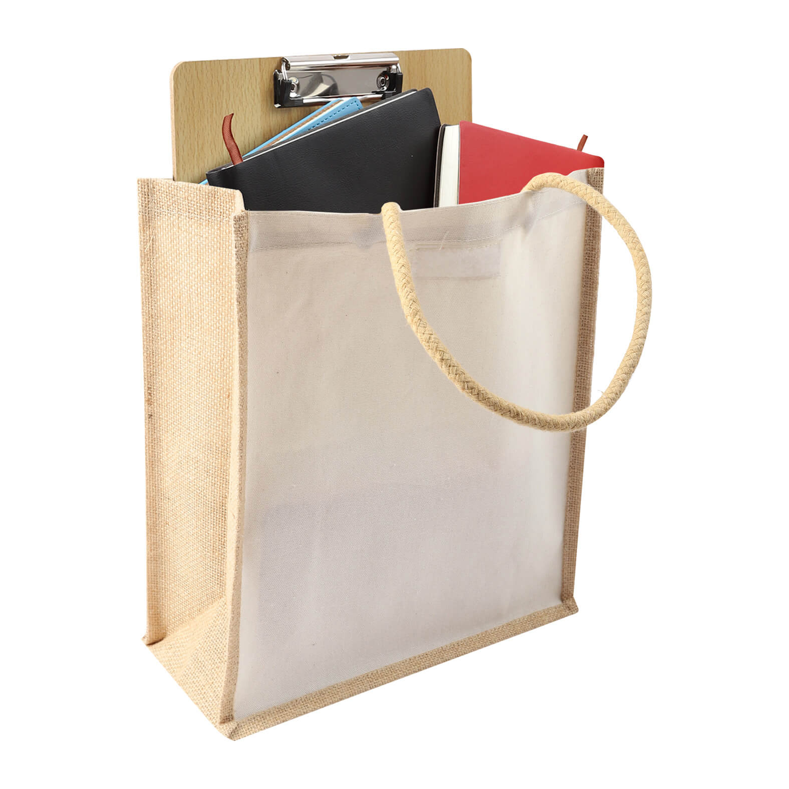GALORE Bolsa de loneta laminada con yute, cierre de velcro y asas.