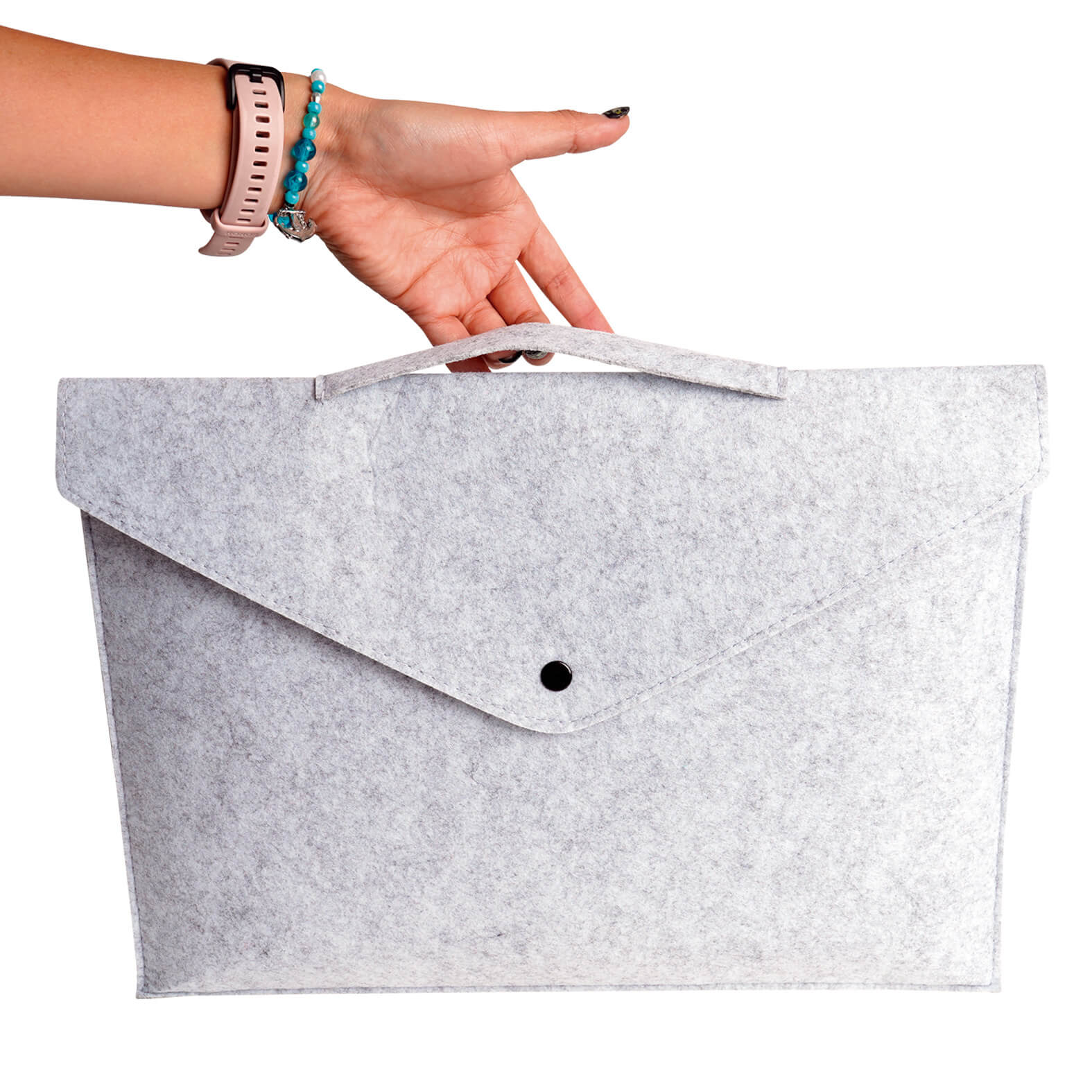 JEFF Portafolio de fieltro con un compartimento principal para laptop de hasta 15" con broche y asas.