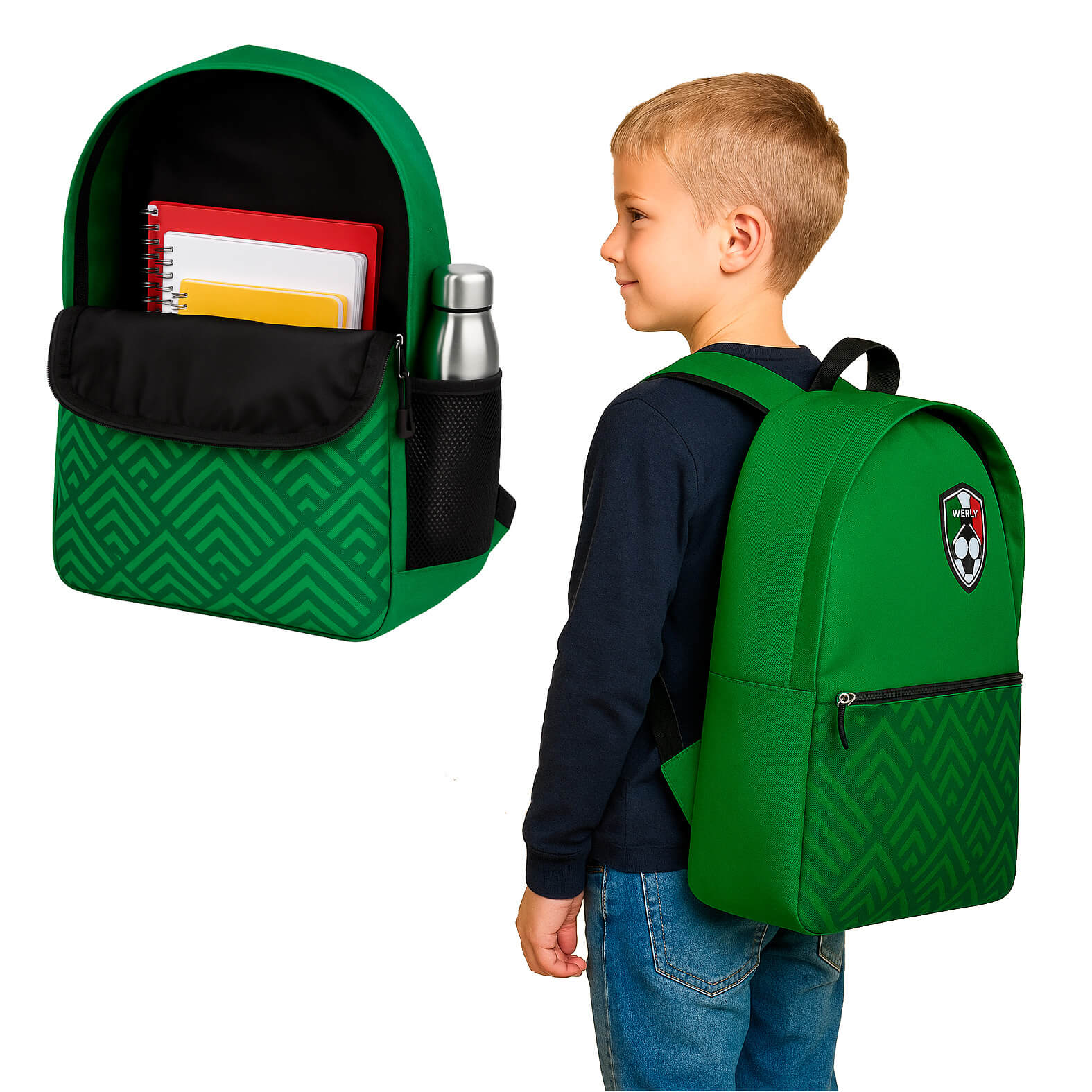 NEYMAR Mochila con compartimento principal, bolsa frontal con cierre, tirantes ajustables, malla lateral y asa superior.