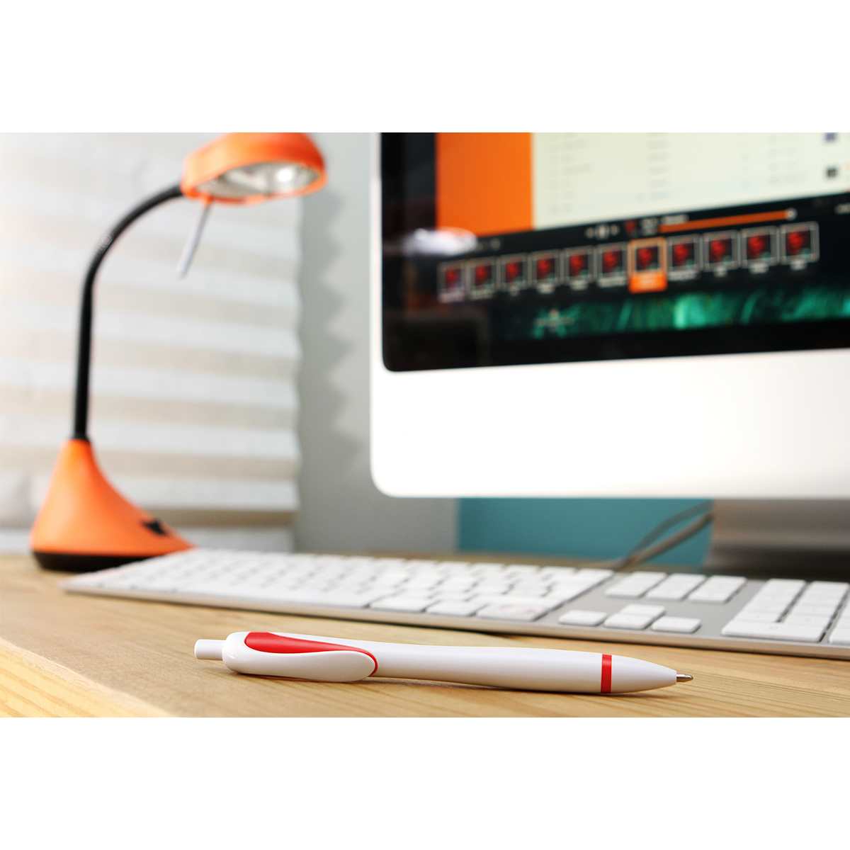 Bolígrafo de plástico Varzi. - Bolígrafo retráctil fabricado en plástico ABS. Su diseño ergonómico se complementa con detalles en colores vibrantes que añaden un toque de estilo. Tinta de escritura negra.