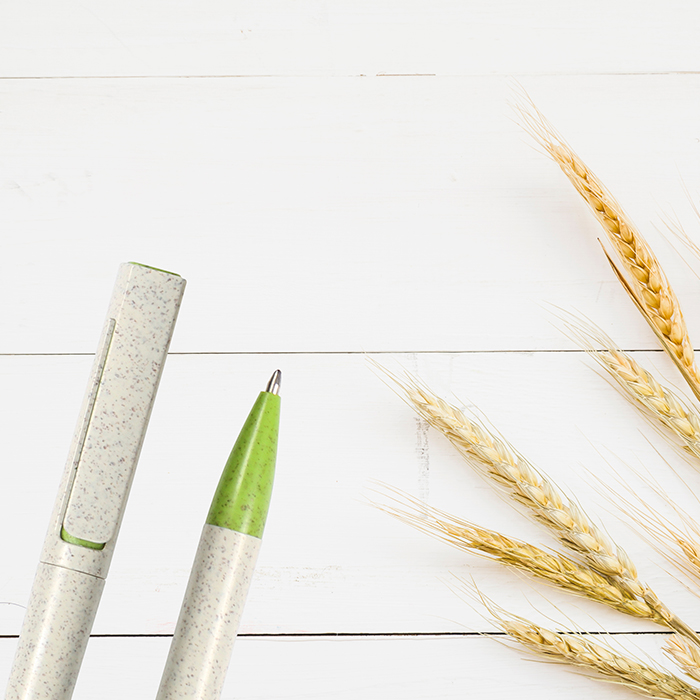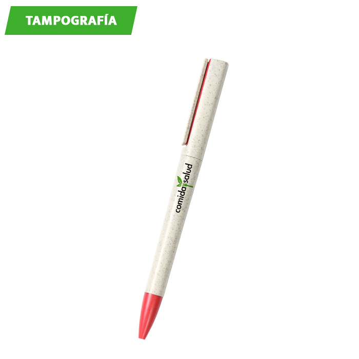 Bolígrafo en fibra de trigo Alcalá. - Bolígrafo tipo twist fabricado en fibra de trigo con detalle de clip y punta en color, tinta de escritura azul.