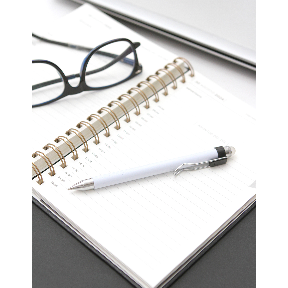 Bolígrafo Enna. - Bolígrafo retráctil fabricado en ABS con detalles de color, detalles cromados y goma. Tinta de escritura negra.