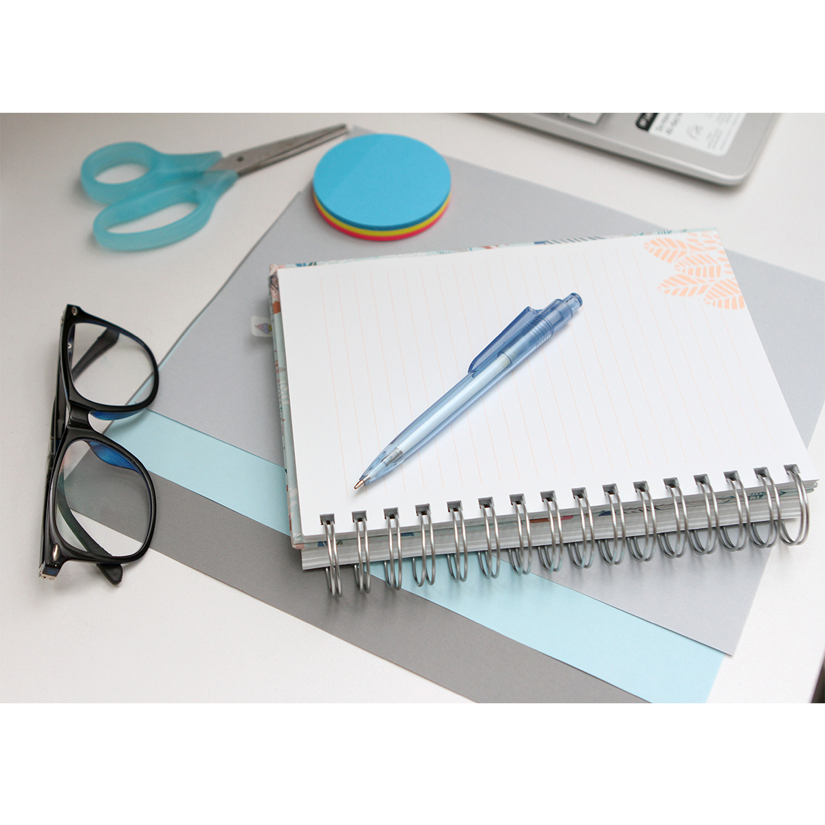 Bolígrafo de RPET Lisala. - Bolígrafo translúcido retráctil fabricado en PET reciclado (RPET), con tinta de escritura negra. El PET es el tipo de plástico más común usado principalmente para la fabricación de botellas desechables. Una gran parte de los desechos en el planeta se atribuyen a este material; el PET reciclado o RPET es el plastico más reciclado en el mundo; lo cual da vida a un nuevo material cuyos resultados reducen el impacto al medio ambiente.