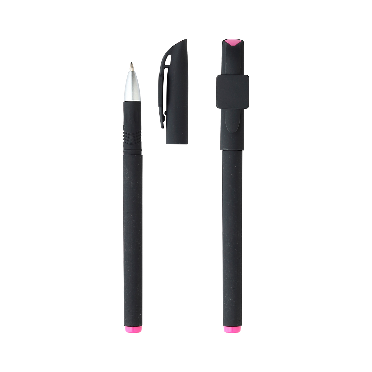Bolígrafo Talsi. - Bolígrafo fabricado en plástico, lo que garantiza su durabilidad y resistencia en el uso diario. El acabado mate le confiere una apariencia moderna, está diseñado con un clip integrado en el cuerpo, lo que te permite sujetarlo fácilmente a tu cuaderno, con detalles de color en el tapón y la parte superior. Tinta de gel escritura negra.