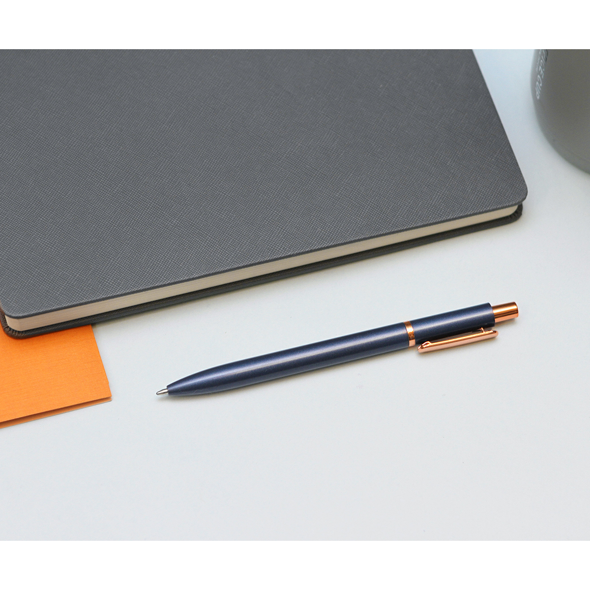 Bolígrafo Pangani. - Bolígrafo con barril de aluminio y detalles en metal cromado color rose gold es una elección elegante y sofisticada para tus necesidades de escritura, está equipado con tinta de escritura azul, incluye estuche de cartón individual, que agrega un toque adicional de elegancia y protección.