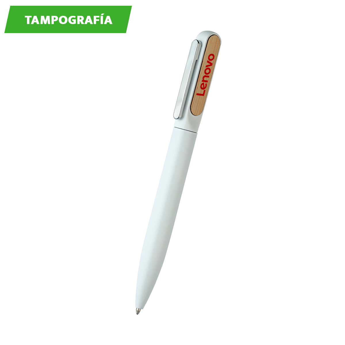 Bolígrafo Breslavia. - Bolígrafo con barril de aluminio acabado mate y detalle superior en bambú. Tinta de escritura negra. Incluye caja de cartón individual con apariencia bambú.