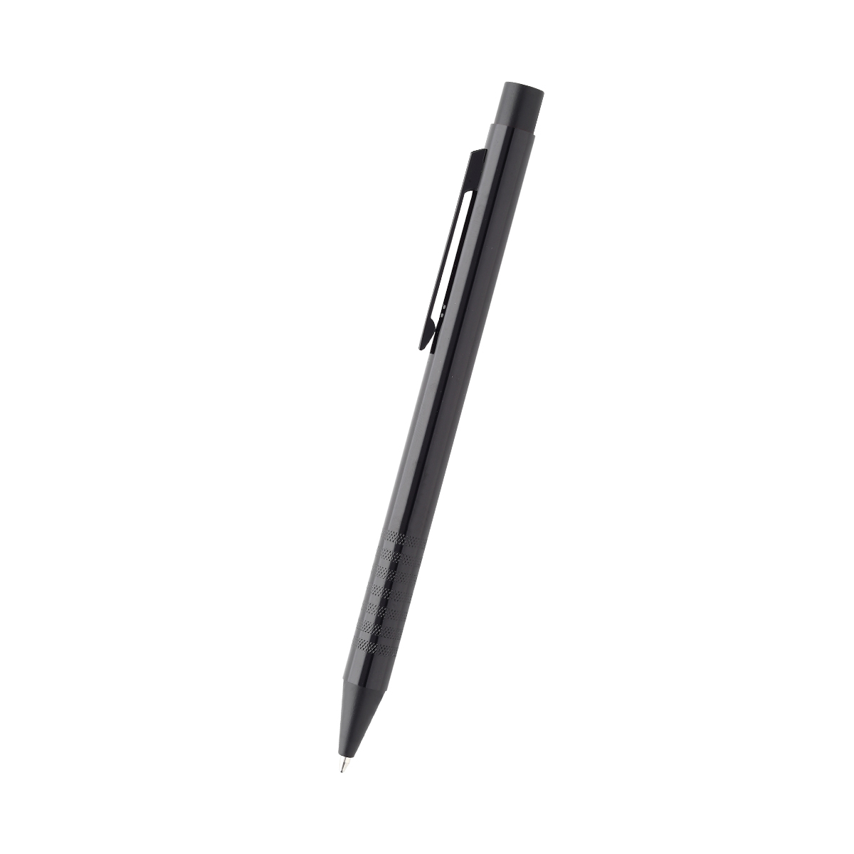 Bolígrafo Celleno. - Bolígrafo con barril de aluminio acabado brillante, botón de plástico y clip metálico. Tinta de escritura azul.
