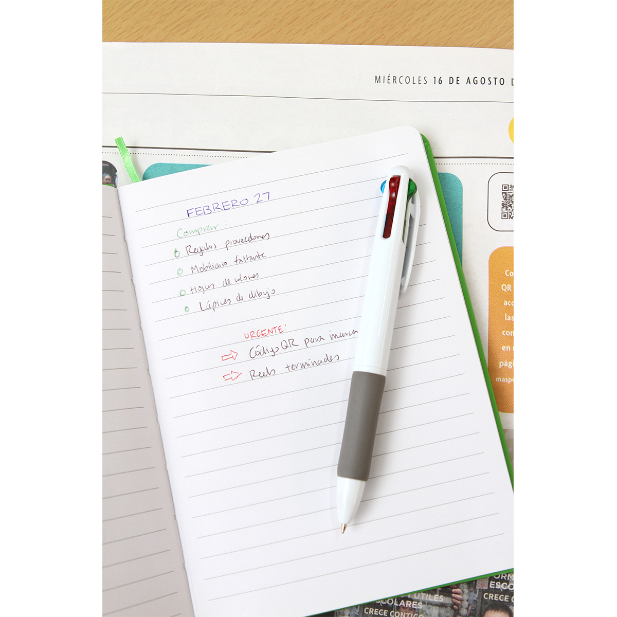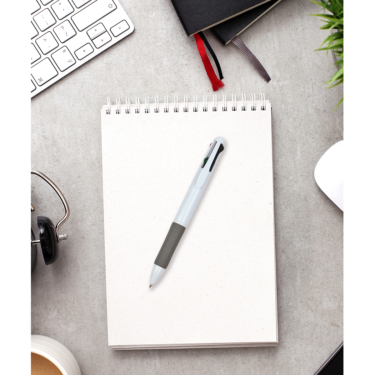 Bolígrafo Corse. - Bolígrafo 4 en 1, con barril de plástico ABS y grip suave, 4 colores de escritura (azul, negro, rojo, verde). El bolígrafo 4 en 1 es una herramienta versátil y práctica que combina la funcionalidad de cuatro bolígrafos en un solo dispositivo, proporcionando una solución conveniente para múltiples necesidades de escritura.