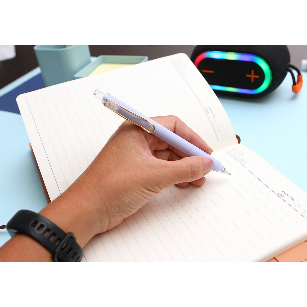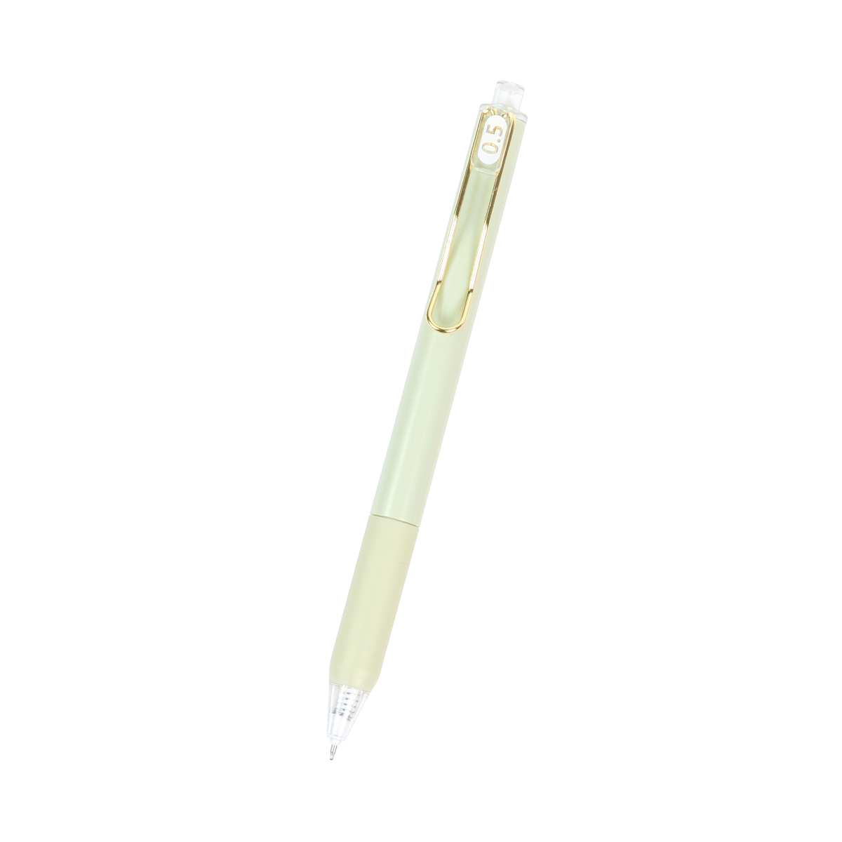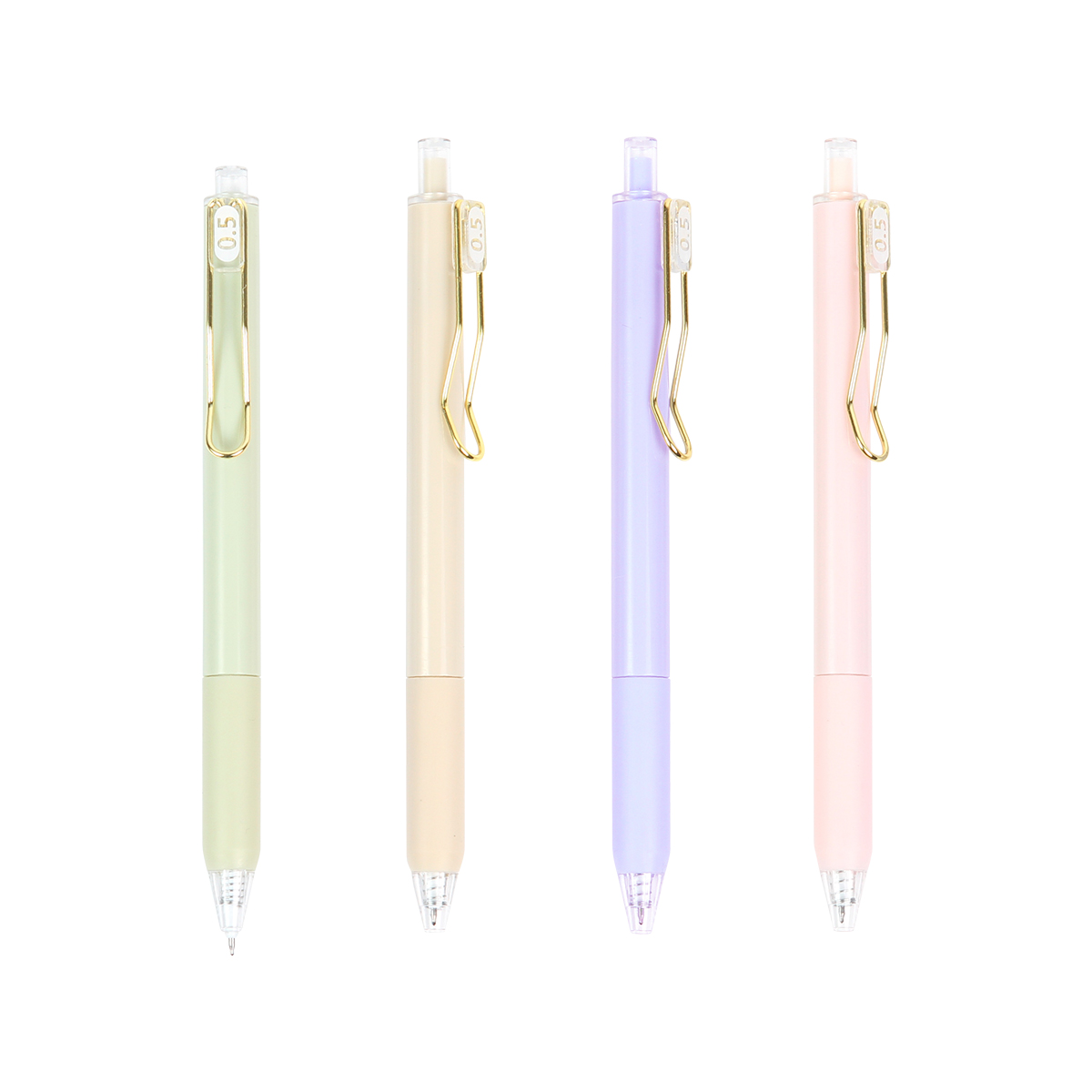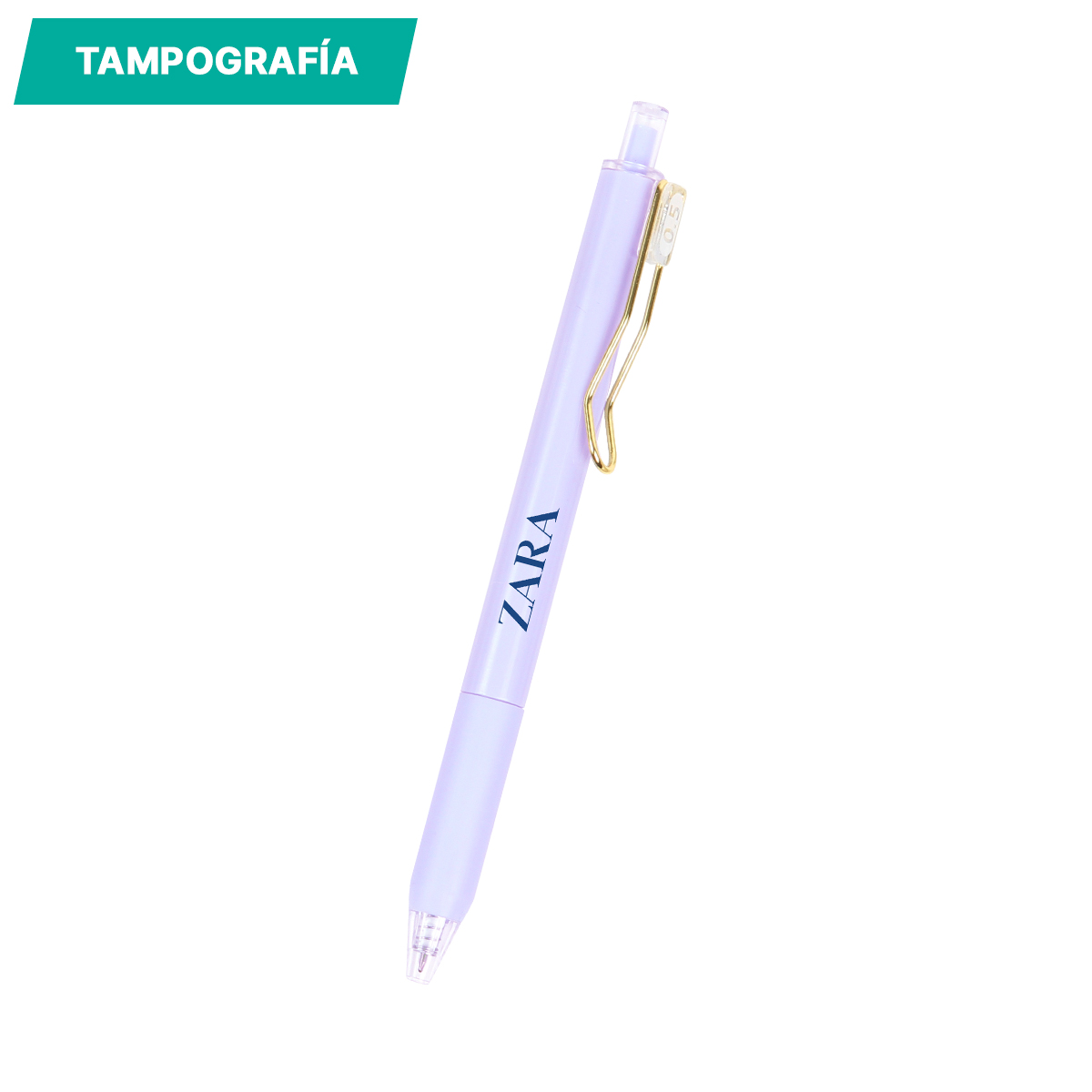 Bolígrafo Sciacca. - Bolígrafo con acción de empuje, fabricado en plástico de color sólido con detalles en color dorado. Con tinta en gel color negro, distancia de escritura de tinta de gel: 300M-400M.