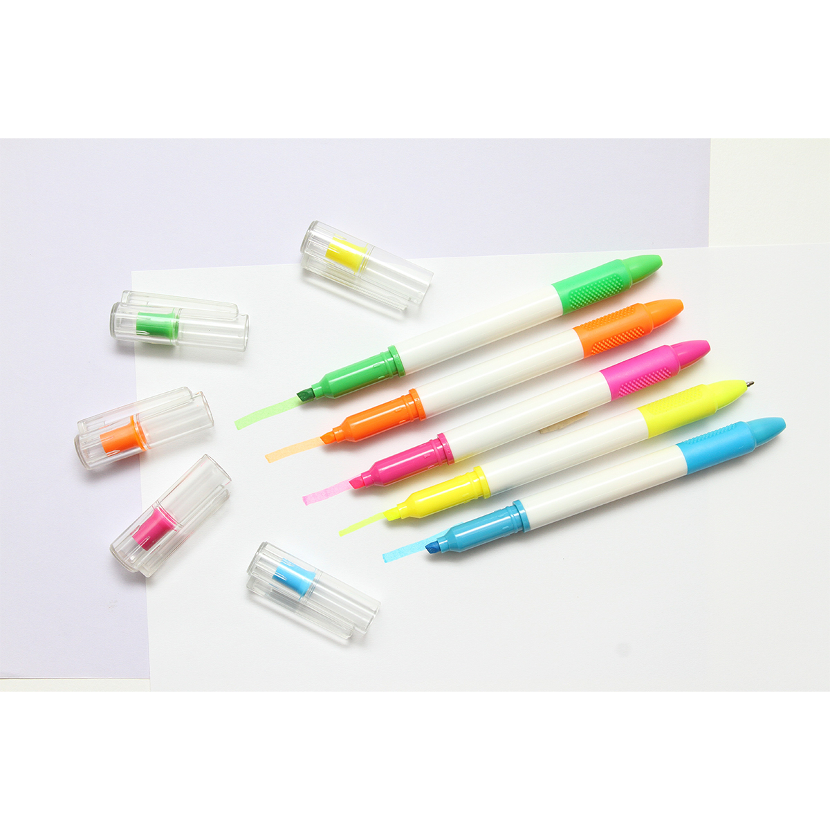 Bolígrafo Skikda. - Bolígrafo 2 en 1 con acción giratoria y marca textos con tapa traslúcida. Barril hecho de plástico reciclado ABS con detalle en goma con textura para mejor uso. Tinta de escritura negra y el marca textos hace juego según el color exterior. Combina funcionalidad y versatilidad en un solo producto.
