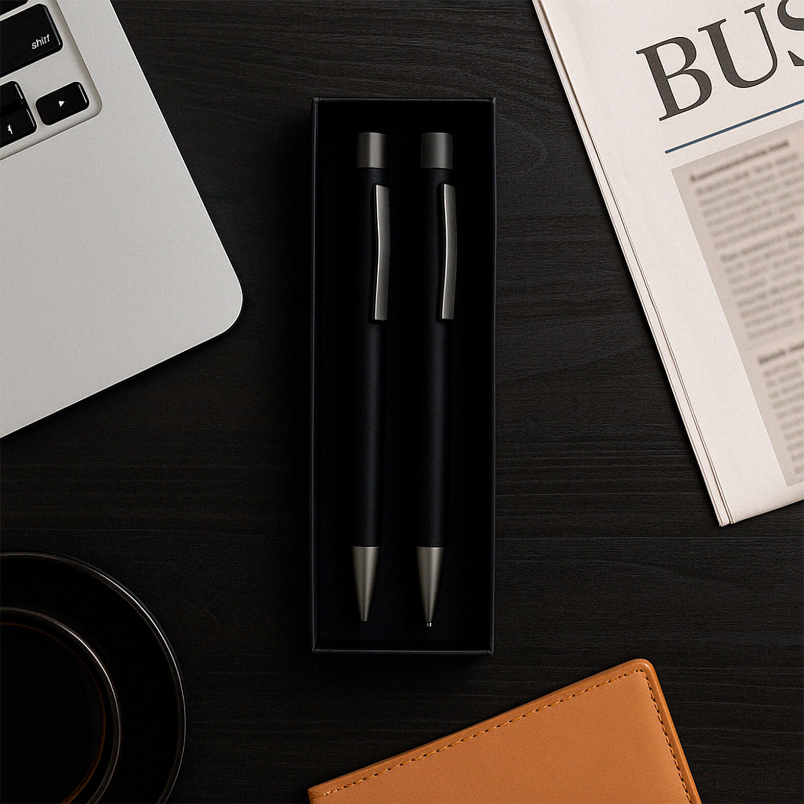 BRISA Bolígrafo y lapicero metálicos con acabado rubber, clip y mecanismo de click. Incluye estuche