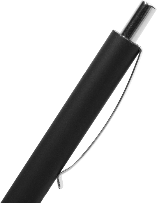 BOLÍGRAFO "ANGRA" Cuerpo color negro. Pulsador, clip y punta plata. Tinta negra. Destape plateado
