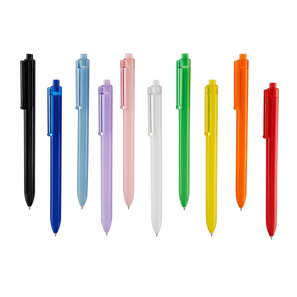 "BOLÍGRAFO CROMA II" Cuerpo blanco y clip de diferentes colores. Bolígrafo retráctil. Clip plástico de colores. Tinta negra. Sistema de botón push para destapar. Amplia área de impresión.