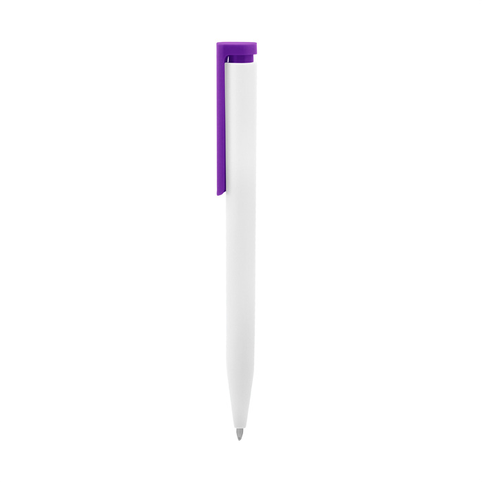 "BOLÍGRAFO CROMA II" Cuerpo blanco y clip de diferentes colores. Bolígrafo retráctil. Clip plástico de colores. Tinta negra. Sistema de botón push para destapar. Amplia área de impresión.