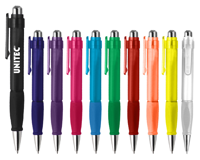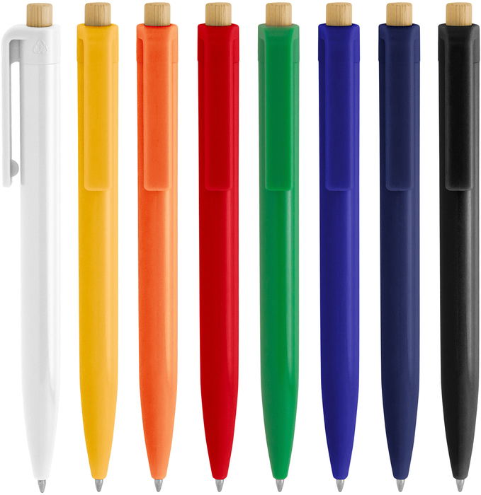 Bolígrafo "LOREN" Diseño moderno con materiales reciclados. Bolígrafo retráctil. Cuerpo plástico en diferentes colores acabado brillante. Pulsador de bambú.