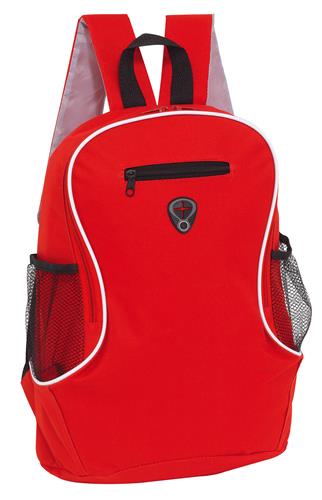 MOCHILA "TRACK" Compartimento principal con bolsillo frontal con cierre. Dos bolsillos laterales de red porta bebidas. Correas ajustables. Cierres metálicos. Salida para audífonos.