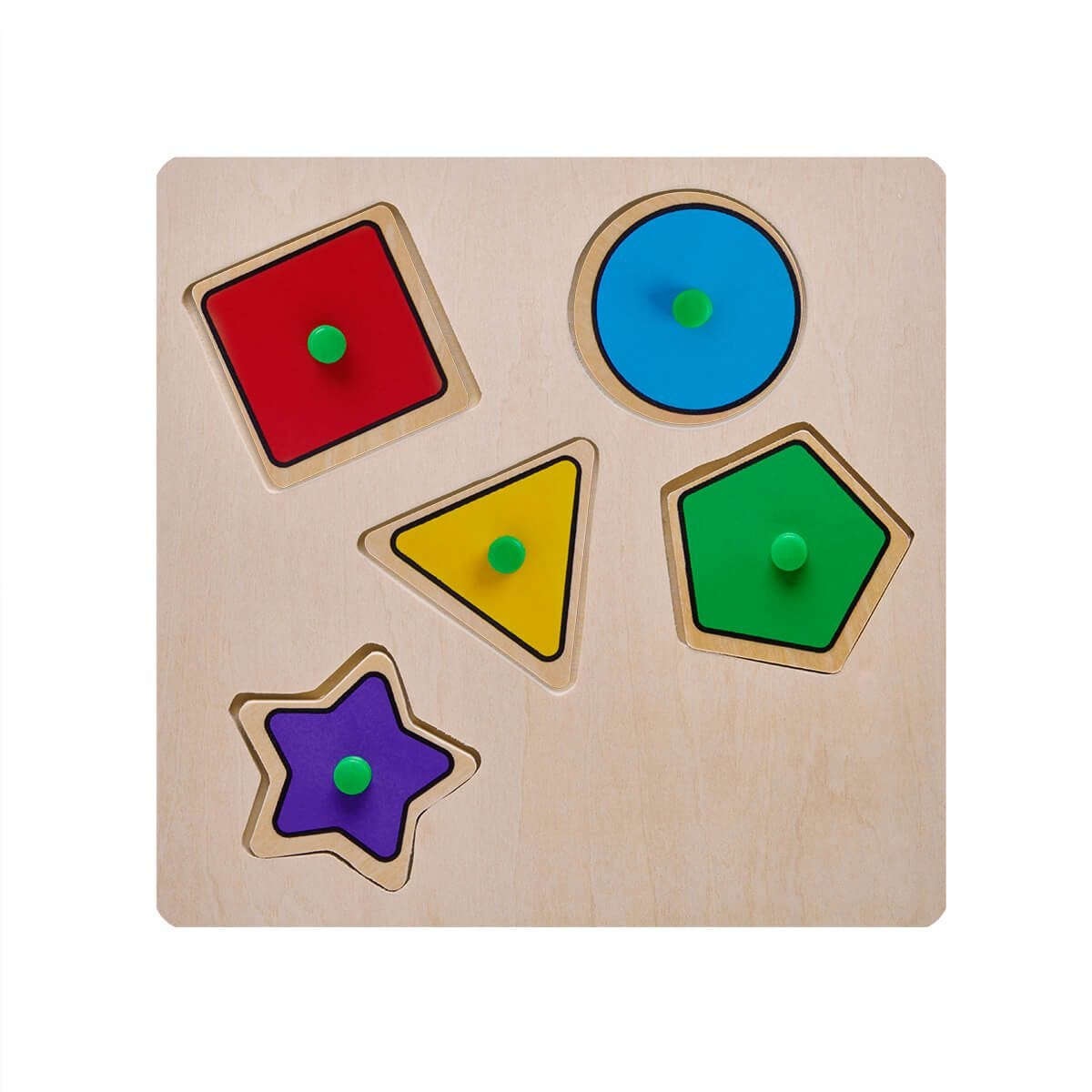 JUEGO DIDÁCTICO HAPPY - Juego de madera de resaque. Incluye 5 figuras geométricas con los nombres en inglés y español. Cada figura es de color diferente. Le permite a los pequeños aumentar el pensamiento lógico, identificar las formas y colores así como desarrollar sus sentidos y la motricidad como la coordinación mano- ojo. La madera es un producto natural el cual puede presentar variaciones en tonalidades y vetas. Este producto por ser últimas piezas puede presentar alguna variación, no se aceptan devoluciones.