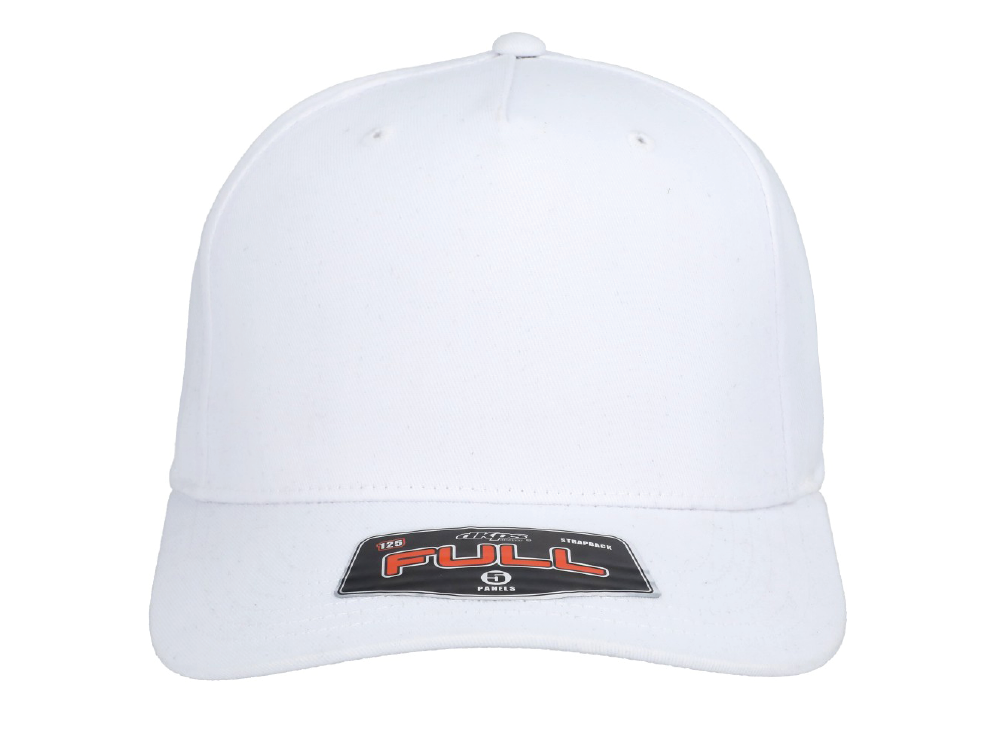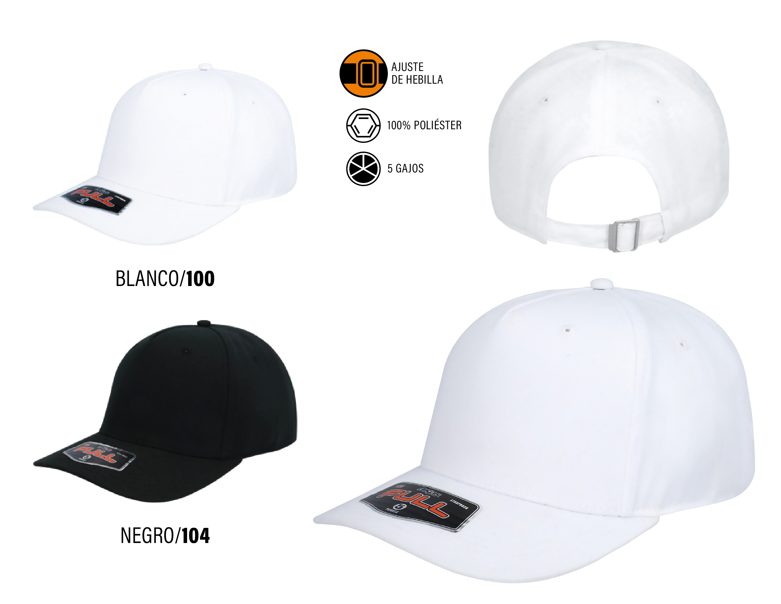 GORRA FULL 100% POLIESTER 5 GAJOS AJUSTE DE HEBILLA METALICA BLANCO
