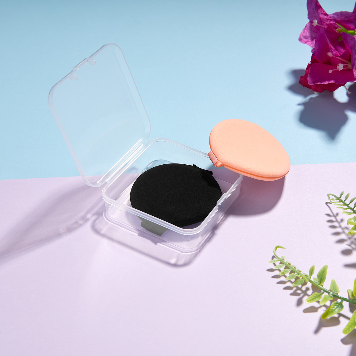 SET DE APLICADORES SUAY - Set de 2 esponjas aplicadoras de maquillaje. Incluye un listón posterior que permite un cómodo agarre para la aplicación. Es suave y absorbente al agua gracias al material hidrofílico, lo que permite crecer su tamaño cuando esta mojada. Puedes utilizarla: en seco, para fijar maquillaje por más tiempo, o húmedo para un terminado más delicado. Incluye estuche de plástico.