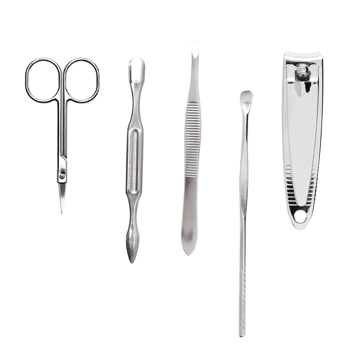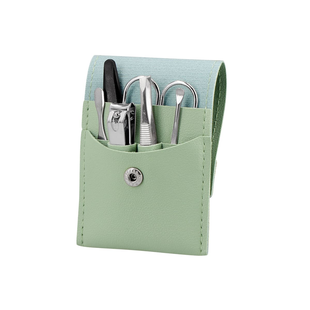 SET DE MANICURE EMMA - Set de manicure. Cuenta con sobre de curpiel con botón metálico. Incluye 6 piezas para un manicure básico: cortaúñas, tijeras curva para uñas, lima de uñas, empujador de cutícula, limpia uñas y pinza para cejas.