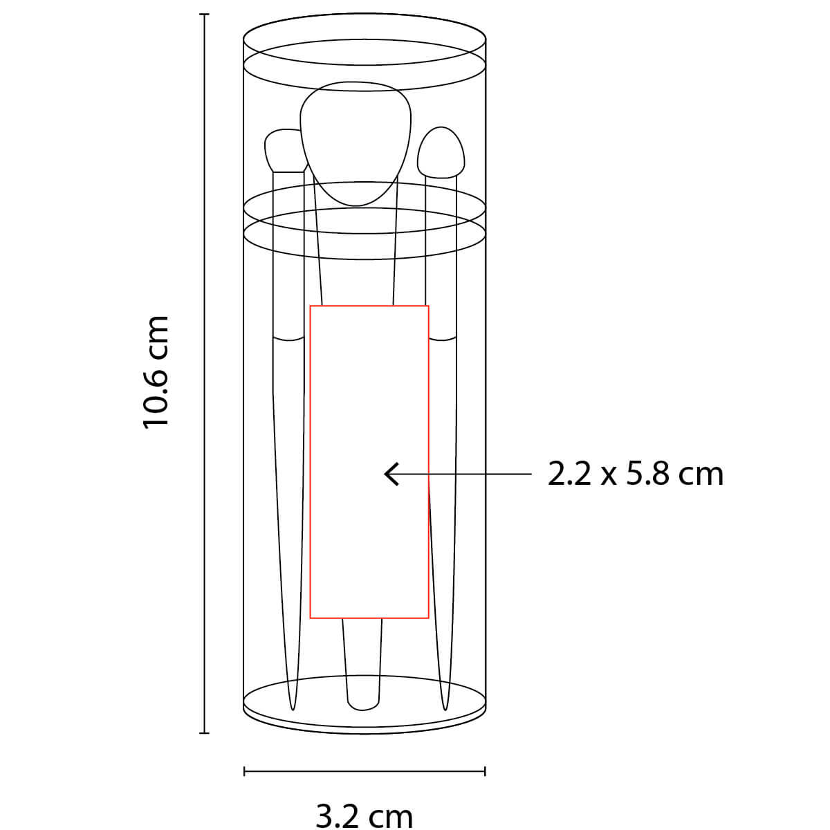 MATERIAL: Plástico MEDIDAS: 3.2 x 10.6 cm IMPRESION: Serigrafía MED. EMPAQUE: 45 x 21 x 26 cm PESO EMPAQUE: 16.8 Kg PIEZAS EMPAQUE: 240