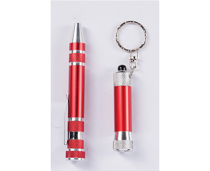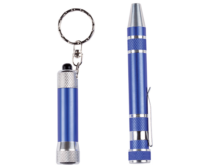 MATERIAL: Desarmador: Aluminio// Estuche: Cartón MEDIDAS: Desarmador: Ø 1.3 x 10.8 cm// Lámpara: Ø 1.3 x 6.5 cm// Estuche: 12.5 x 6 cm IMPRESION: TM SE GL MED. EMPAQUE: 32 x 28 x 23.5 cm PESO EMPAQUE: 10 kg PIEZAS EMPAQUE: 100