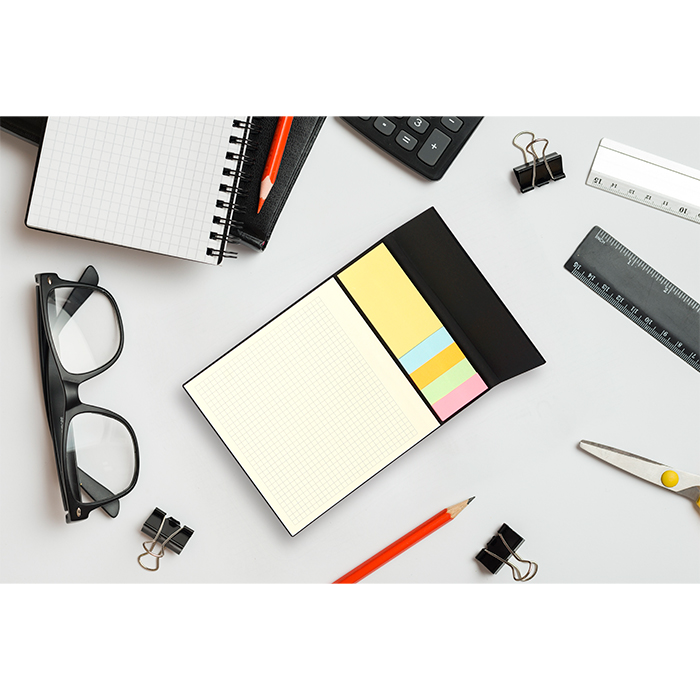 Block de notas Chennai. - Block de notas con 70 hojas de cuadricula detalle en PU y banderines adheribles.