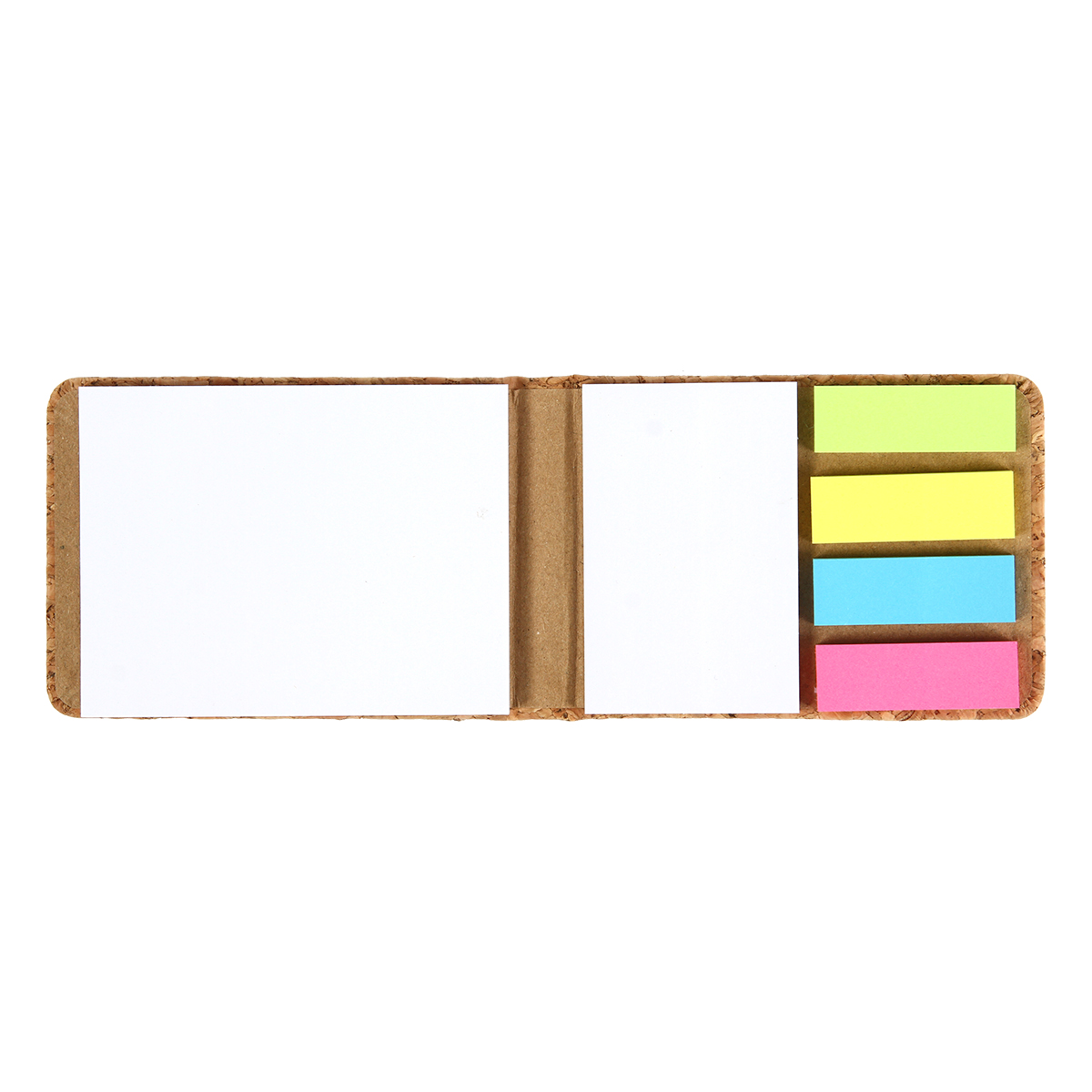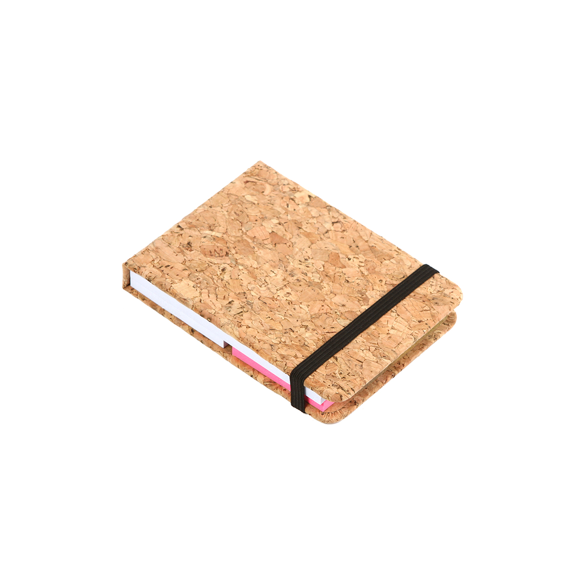 Set de notas Kokar - Set de notas de bolsillo con pasta de corcho y banda elástica color negro, incluye 50 banderines adheribles en 4 colores.