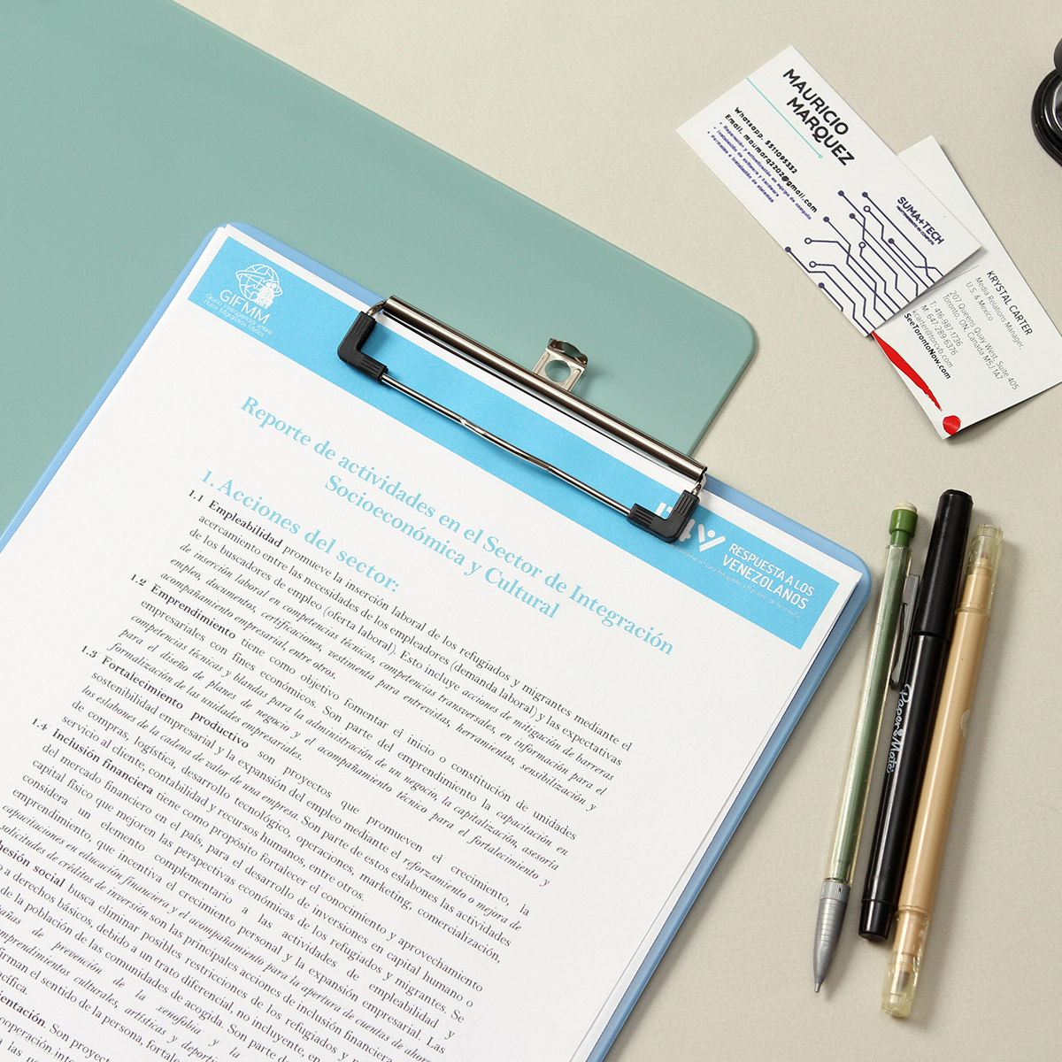 Tabla porta documentos Bitung. - Fabricada en plástico PS con un clip de acero inoxidable y un acabado brillante, ideal para llevarla contigo a reuniones, conferencias o en tus desplazamientos diarios. Su diseño compacto y ligero la hace fácil de transportar y su clip resistente asegura que tus documentos se mantengan en su lugar.
