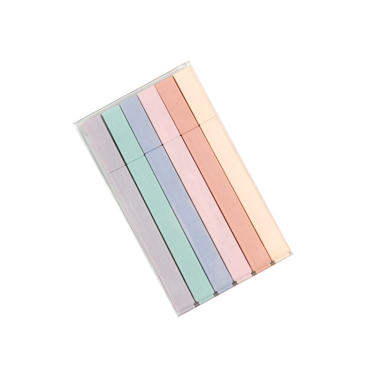 Set de marcadores Paya. - Set de 6 marcadores de texto en tonalidades pastel con cuerpo cuadrado. El set incluye colores en Azul, Morado, Naranja, Rosa, Rojo y Verde. Tinta del mismo color que el cuerpo del marcador. Ideales para la oficina o el colegio.