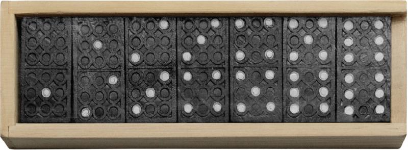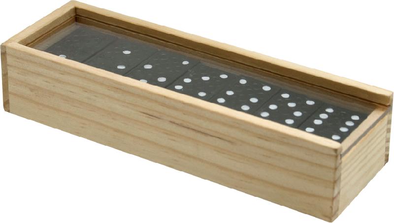 Juego de dominó-15 x 5 x 3 cm. Plástico y madera. Juego de domino con 28 piezas plásticas, caja de madera y tapa plástica transparente. Manual de instrucciones dentro de la caja. Presentación en caja de regalo.