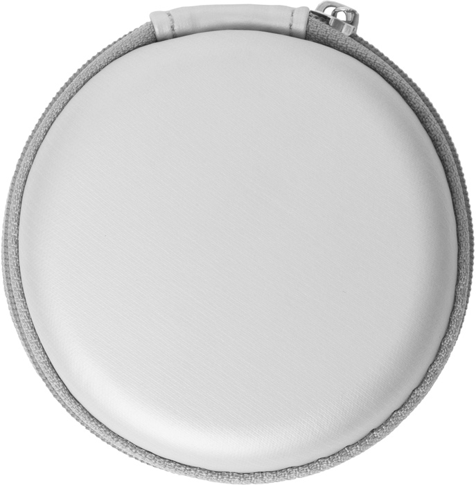 AUDÍFONOS BLUETOOTH “FUNN” Audífonos bluetooth. Cable de 57,5 cm aprox. Sujeción deportiva que asegura una buena fijación. Botones para aumentar / disminuir el volumen, aceptar y rechazar una llamada. En uno de los costados entrada mini usb para recargar la batería. Estuche redondo de Eva Pouch.
