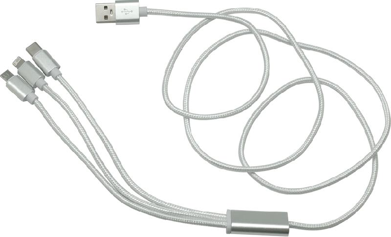 CABLE CON ADAPTADORES "MADISON" Cable con entrada USB y diferentes adaptadores: Iphone, tipo C y Android. Viene dentro de una bolsa plásticas con cierre ziploc.
