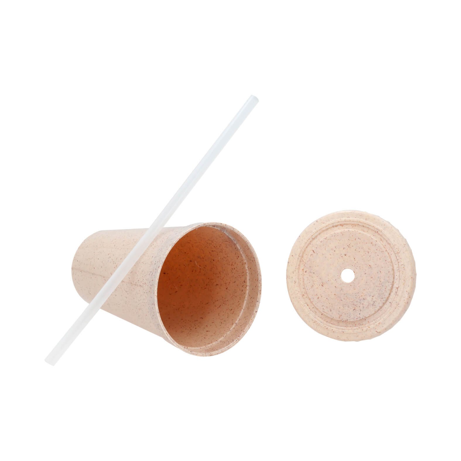 ECO ROCK Vaso de RPET con tapa hecha a base de cebada y popote.