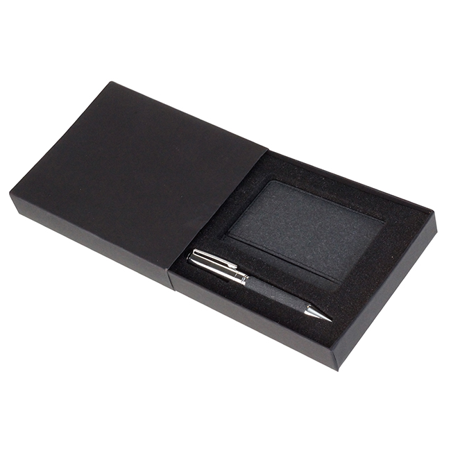 Set Marsella Set Marsella l Bolígrafo metálic con grip en PU reciclado Portatarjetero con 4 compartimentos Caja de presentación